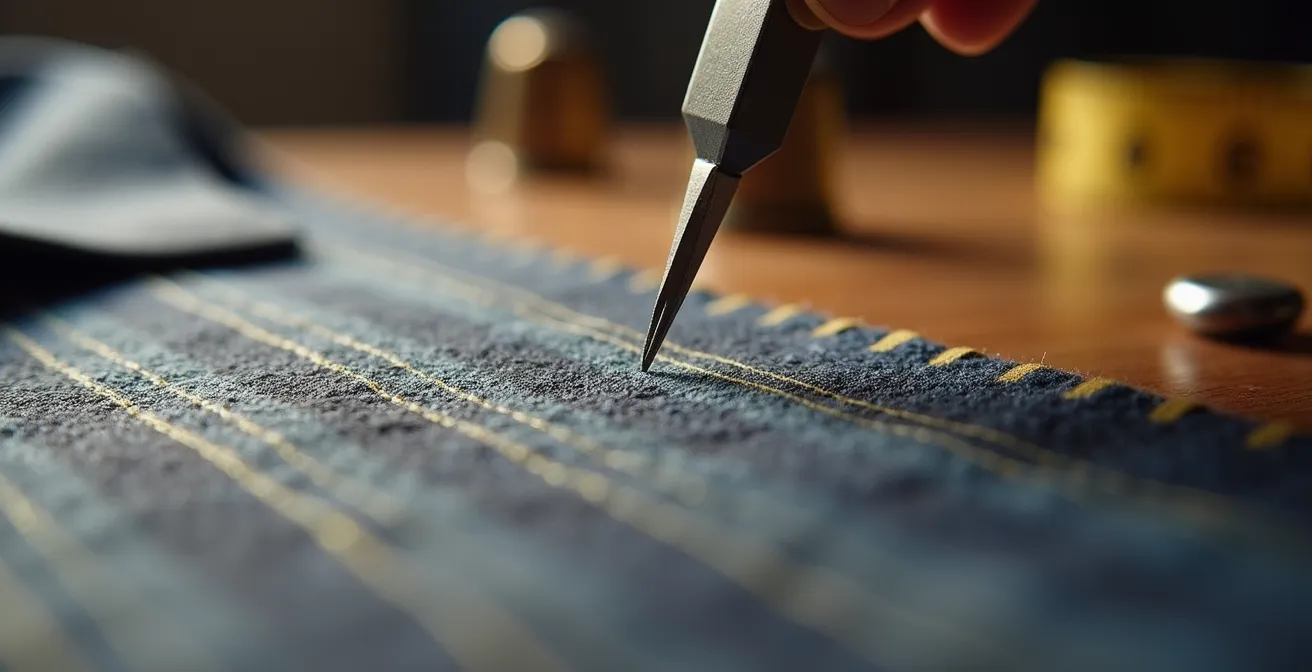 Quando si accorcia un pantalone, il pericolo è quello di eseguire un orlo non perfettamente perpendicolare al drittofilo. Se la linea di taglio è anche solo leggermente storta, una volta indossato, il pantalone tenderà a “girare” sulla gamba, con la cucitura laterale che si sposta verso il fronte o il retro. È un difetto sottile, ma che comunica immediatamente una sensazione di disordine e scarsa qualità. Un sarto esperto, prima di tagliare, si assicura che il pantalone sia perfettamente allineato e che l’orlo sia una linea retta impeccabile rispetto alla caduta del tessuto.
